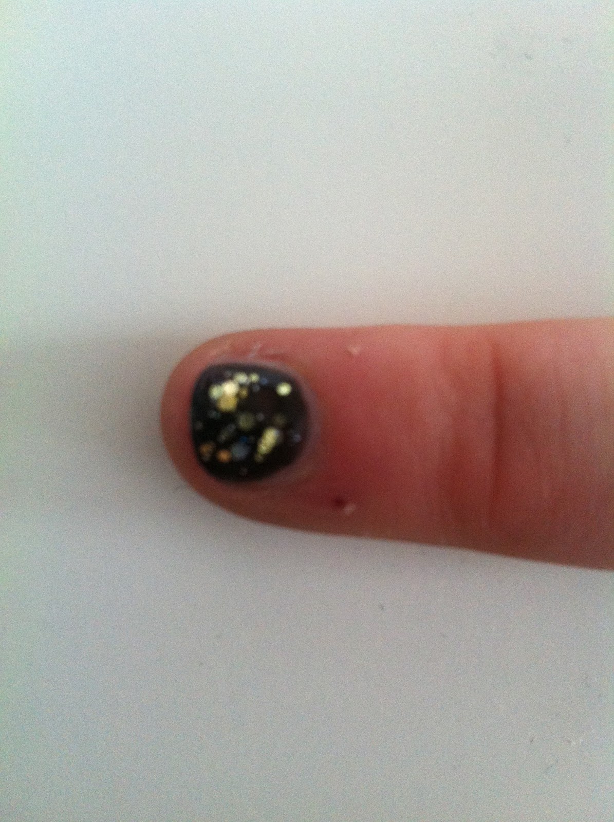 This is 351 Yellow Topaz Glitter, I think this is actually my go to winter colour, its great over black to show off the colour of the glitter but my favourite way to wear this is over a bright red for Christmas! It has two glitters in it like the Rose Quartz one, a smaller glitter which gives it a bit of a base and then you get these big glitter chunks that scatter over the nail to give a really nice effect.